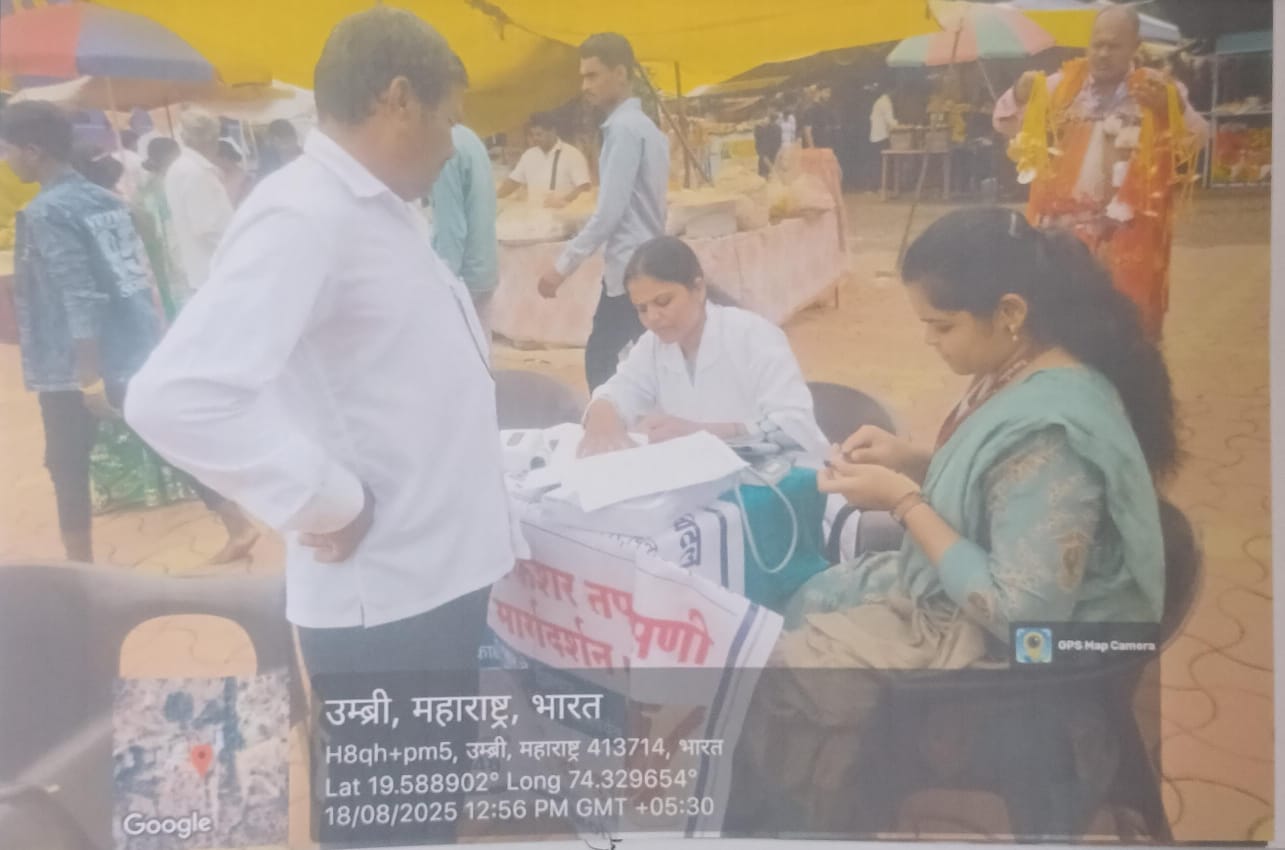 अश्विन रुरल आयुर्वेद कॉलेज व हॉस्पिटल यांच्या वतीने दिनांक :- १८/०८/२०२५ रोजीशिबिराचे ठिकाण :- निझरणेश्वर मंदिर कोकणगाव ता. संगमनेर जि. अहमदनगर ता.संगमनेर. येथेसर्वरोग निदान तपासणी व उपचार शिबीर घेण्यात आले या शिबिरामध्ये ४३ रुग्णांची तपासणी व उपचार करण्यात आले. या शिबिराला डॉ. मोरे तेजस्विनी, नेत्ररोग टेक्निशियन श्री.रोहित मते, राहुल पिंपळे यांचे सहकार्य लाभले